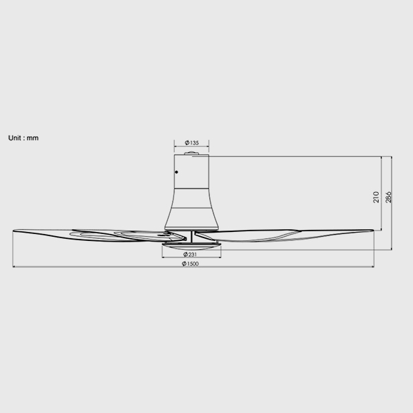 Bảng vẽ kỹ thuật của Panasonic F‑60TDN-S 5 cánh: